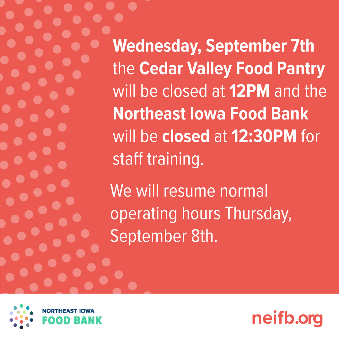 Northeast Iowa Food Bank is a 501c3 nonprofit organization. Northeast Iowa Food Bank Waterloo IA. This institution is an equal opportunity provider.
